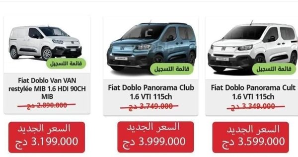 Fiat Doblo Panorama Cult qui coûtait 3.349.000,00 dinars va coûter 3.599.000,00 dinars TTC.